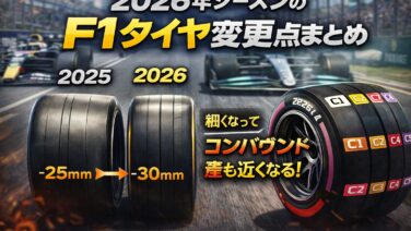 2026年F1はマシン規定が大改定。その影響でタイヤも「サイズ」「特性の作り方」「戦略の幅」がアップデートされます。 この記事では、観戦で困らないように2025年から何が変わるのかをポイントだけに絞ってまとめます。